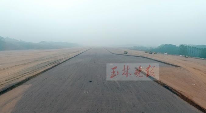 12月底完成了机场跑道道槽的填挖,整个机场跑道全长2.6公里、宽45米,计划春节过后开始铺设跑道水稳层。