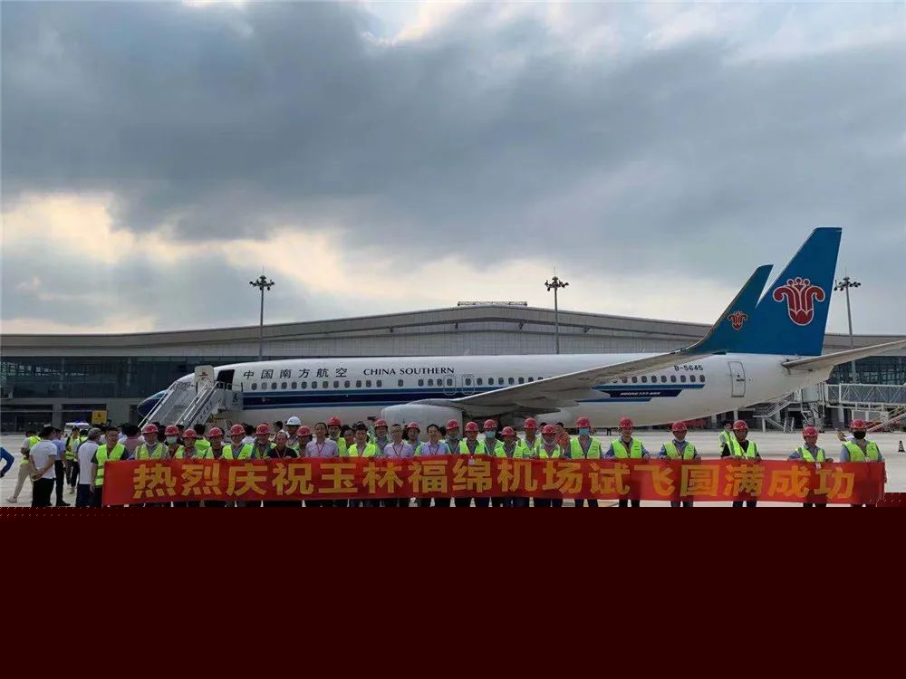 玉林福绵机场迎来首架客机——中国南方航空公司的波音737—800型客机,试飞成功!