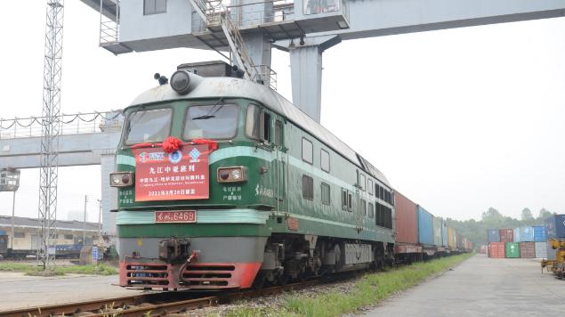 8月28日,X75108/7次列车满载着50个集装箱的纺织品、布料、服装、家具等日用生活物资,从九江南站驶出,这是赣北地区开行的第一趟中欧班列。