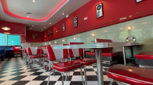 总台记者 罗子瑛:北京环球度假区拥有80个餐厅和餐饮零售点,比较著名的有梅尔斯餐厅,它几乎是每个环球影城的标配。这个汽车餐厅还原的是1973年的老电影《美国风情画》,不仅门口停满老式复古车,而且还有一个非常著名的车厢用餐区。