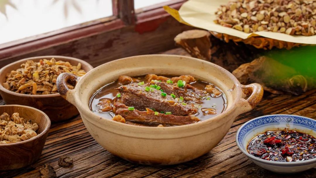 马来西亚肉骨茶源于福建派,是以当归、玉竹、甘草等中药材熬制汤底,加入黑酱油,汤色浓,药材味重,还有健脾祛湿的功效,初秋来一碗正好。