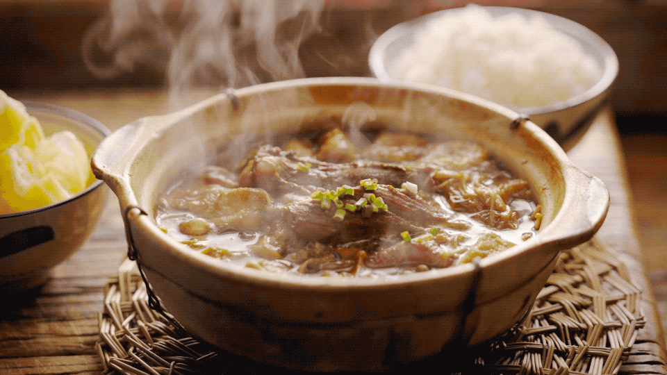 砂锅小火煨煮,出锅前撒上一把葱花,一碗热腾腾的砂锅肉骨茶就做完了。