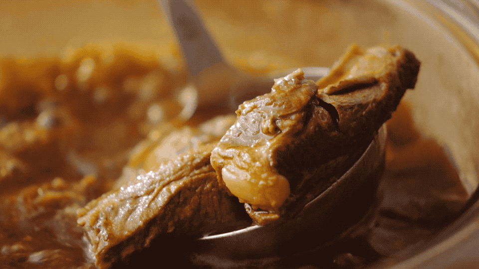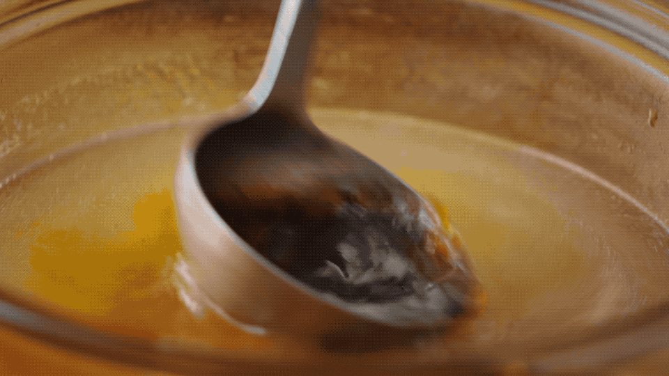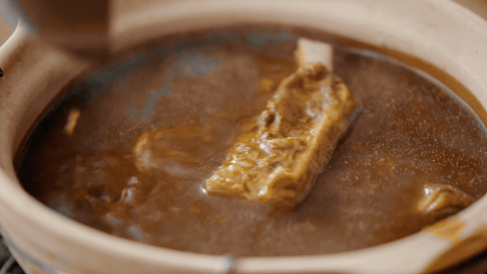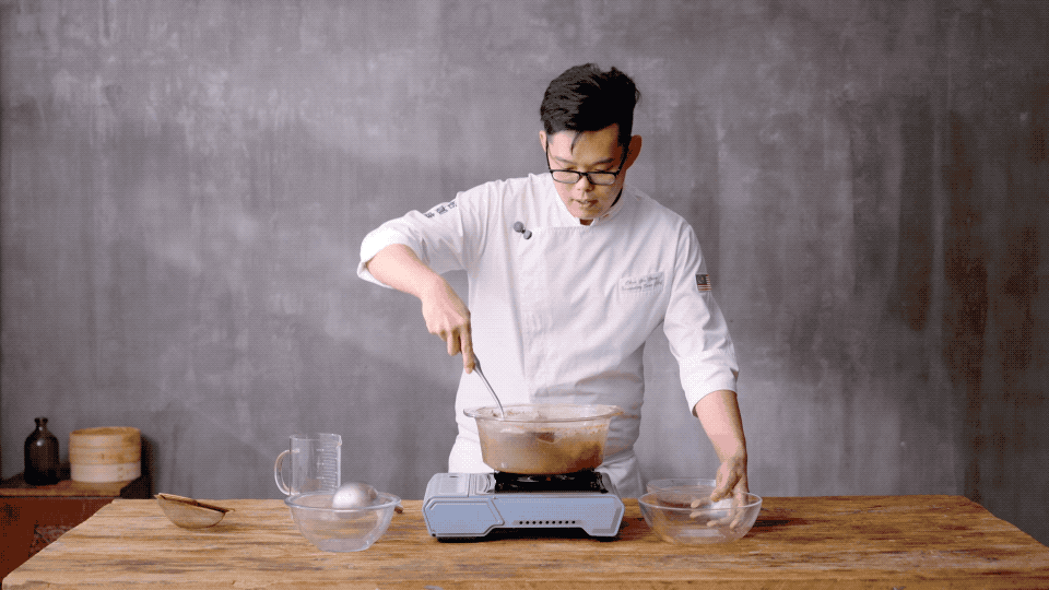 大家自己在家里做的时候,建议选择高压锅,大概2个小时就可以完成。熬制8个小时后,我们要把里面的筒骨还有药材先捞出来,大蒜还是留在汤中。