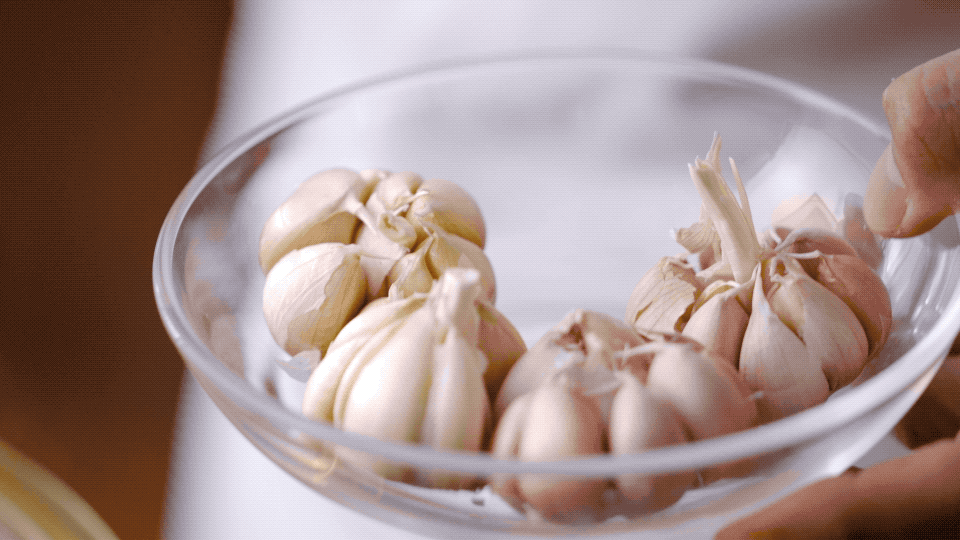 水烧开后,把筒骨先下到锅中,再下大蒜,记住,是要将外皮剥去的整颗大蒜。