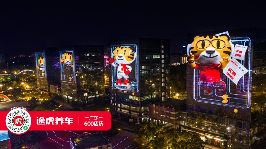 12栋大楼联屏,跨越整个广州科学城,繁华光影带出四款途虎泰哥形象——“朴实虎”“科技虎”“工匠虎”“功夫虎”。8月28日晚,一场创意灯光秀闪耀广州夜空,为这座城市塑造了流光溢彩的“光影霓裳”。据了解,这是途虎养车工场店广东600店庆呈现定制的视觉盛宴。