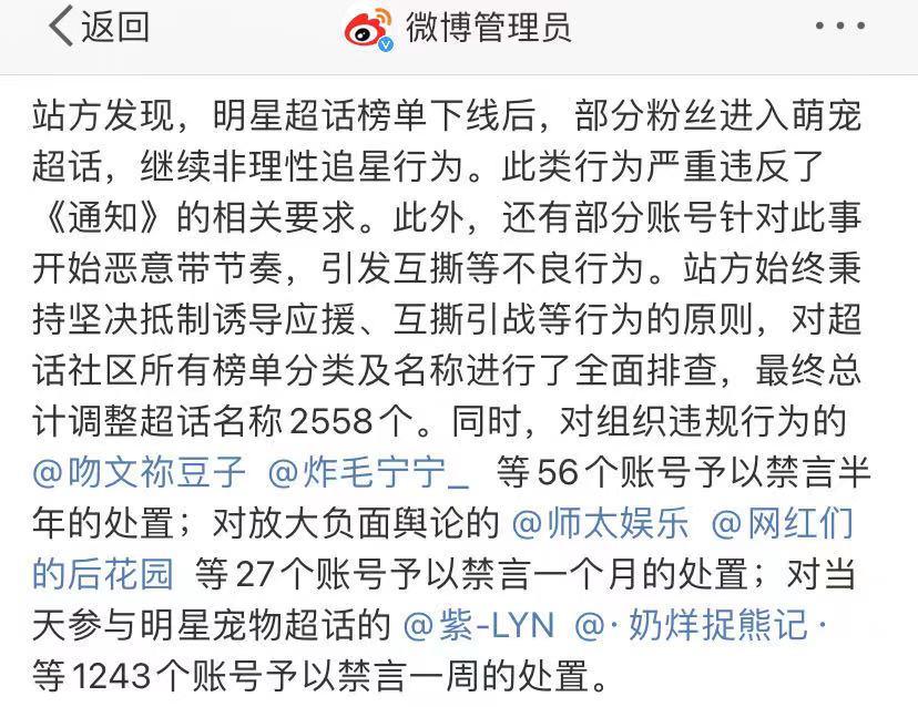 8月28日、8月29日@微博管理员 接连发布公告。值得注意的是,其中提到:部分粉丝进入萌宠超话,继续非理性追星行为。还有部分账号针对此事开始恶意带节奏,引发互撕等不良行为。
