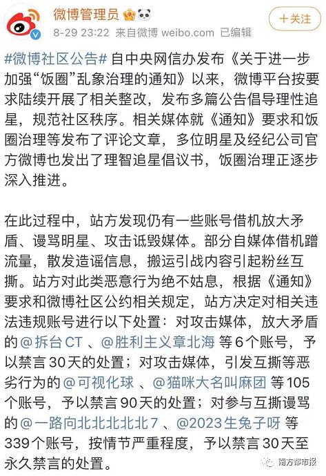 8月27日,中央网信办发布通知要进一步加强“饭圈”乱象治理。