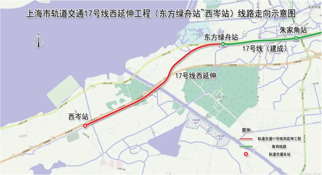 上海轨交17号线西延伸,东起东方绿舟站,沿沪渝高速公路南侧延至西岑,长约6.6公里。
