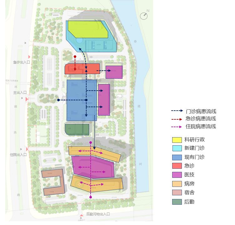 主要功能设置门诊、病房、医技、科研等医疗用房。