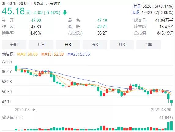 截至8月30日收盘,芒果超媒股价下跌5.48%,报45.18元/股,盘中最大跌幅超过10%,近三日股价跌幅超过17%,最新市值已跌出千亿公司行列。