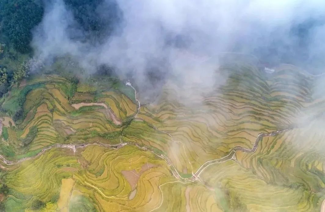 稻花香里说丰年,梯田醉了秋天。黄绿相间的雾云山梯田,不仅是绝美的自然景观,更是人民勤劳智慧的结晶。