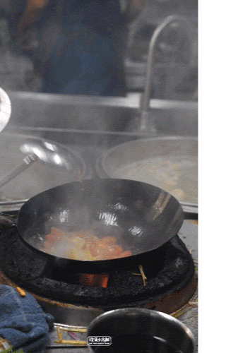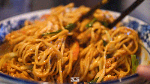 炒面师傅同起两个炉灶,一锅煮面另一锅炒浇头:面条汆熟后快速沥干,与浇头一起猛火爆炒,调料码味全凭手感,全程不超过2分钟,行云流水一气呵成,华丽程度堪比《中华小当家》。· 喷香油渣,无限量自助 ·