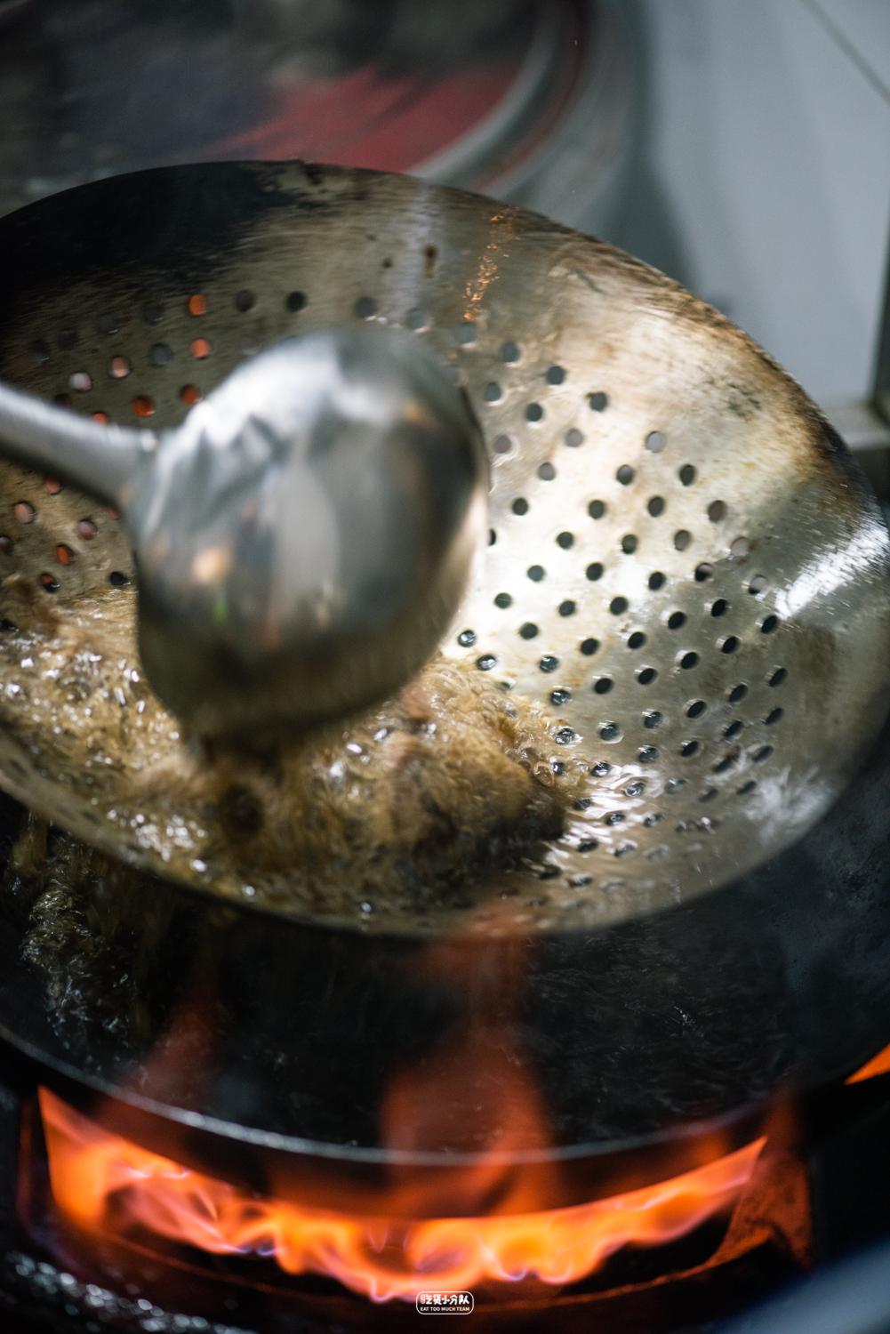 讲究的虾爆鳝,油就要用到素油,猪油和麻油三种。黄鳝事先吐沙褪尽泥腥气,现场割剖拆骨,先用素油煸炸,沥干再用猪油爆香。然后加其他料头猛火大炒,虾仁最后下入,怼上高汤和面,轻煨片刻......