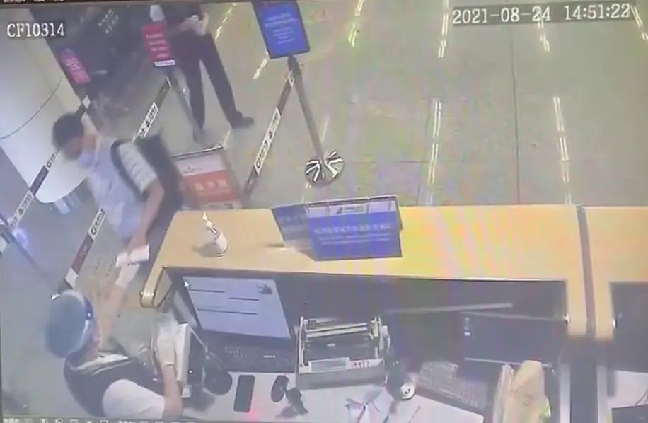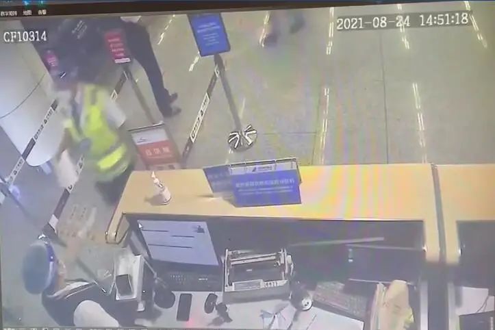 8月24日14时51分,在工作人员引导下,一位拖着行李箱的乘客迅速通过登机口,此时距离他要乘坐的航班原定的起飞时间只剩下9分钟。