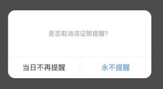 小贴士:点击证照提醒旁边的“不再提醒”,可关闭提醒,您可以根据需求选择“当日不再提醒”或“永不提醒”。