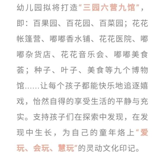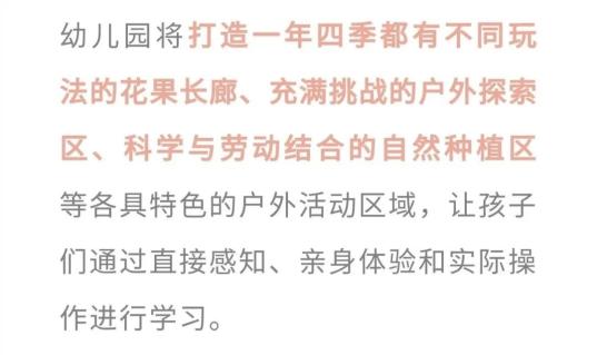 占地面积4500㎡,建筑面积为7556㎡,办园规模为12个班,可提供学位360个。