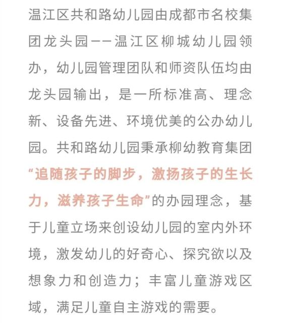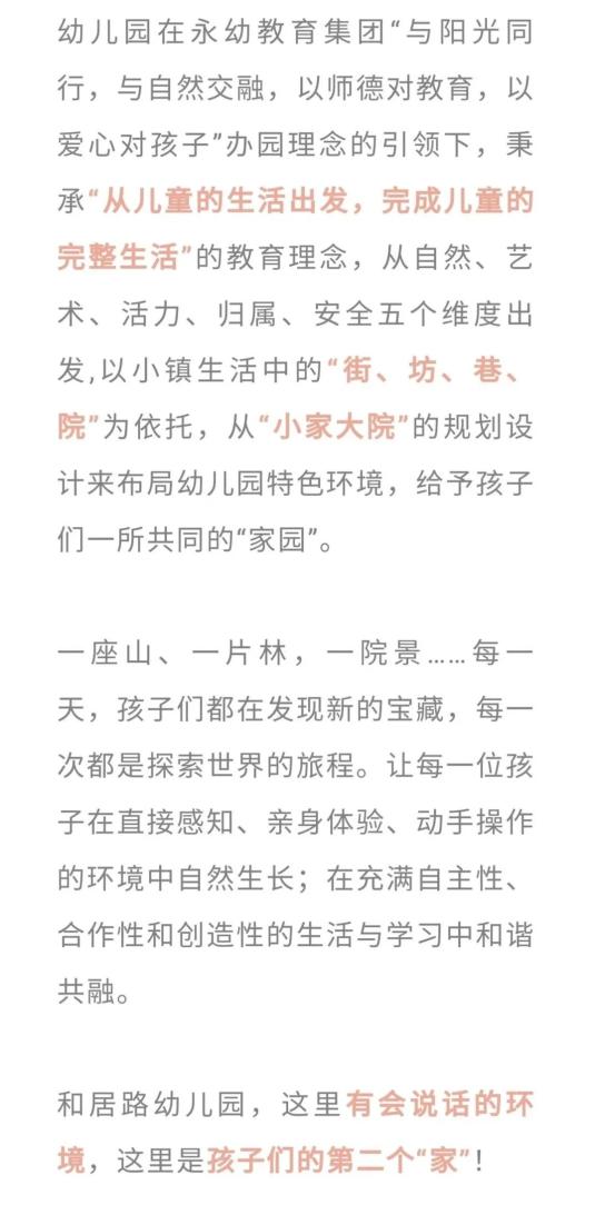 温江区和居路幼儿园是永幼教育集团下的第三所幼儿园,位于温江区“三医研发小镇”,占地面积约5058平方米,建筑面积约3156平方米,12个教学班规模,可容纳幼儿360人。