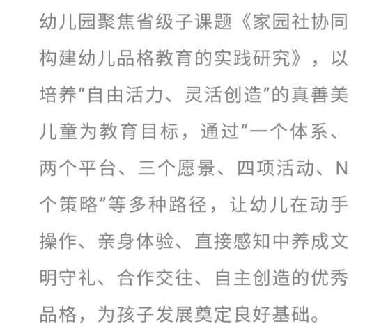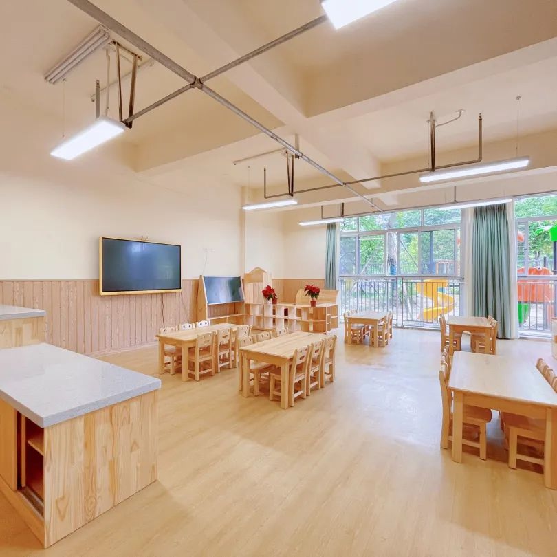 共12个教学班,宽阔的户外活动场地,现代化的教育教学设备,丰富的各类游戏材料和完备的各类功能室一应俱全。