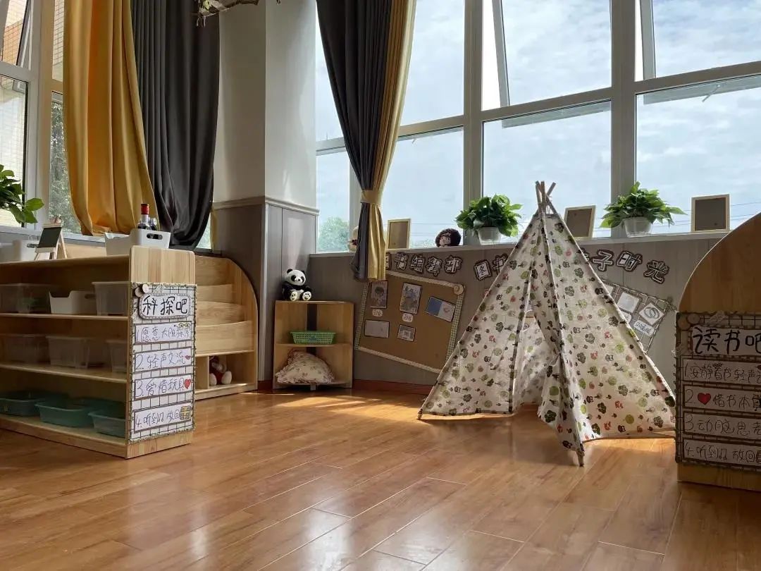 该园首创天府新区森林式轻氧幼儿园,占地约11亩,绿化面积2290㎡,设有15个教学班。