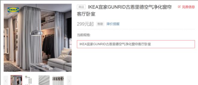 宜家中国表示,“GUNRID古恩里德”窗帘产品广告宣传中所提及的空气净化功能,是在限定的试验条件下针对特定目标污染物进行检测而得到的净化结果。在实际生活环境条件下,净化效果可能会因环境条件的变化而不同。(广州日报)