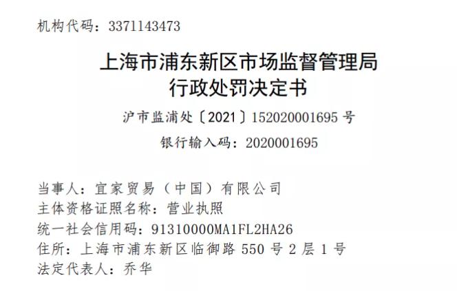 国家企业信用信息公示系统显示,宜家贸易(中国)有限公司因存在以下违法行为:使用不当容易造成产品本身损坏或者可能危及人身、财产安全的产品无警示标志或者中文警示说明,8月9日被上海市浦东新区市场监督管理局处以没收违法所得30.66万元,罚款47.68万元。罚没合计78.34万元。