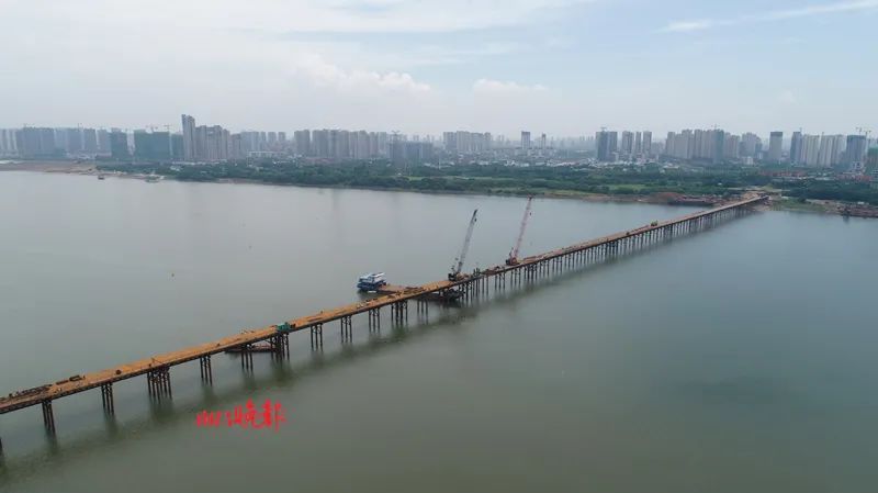 目前,大桥前期施工钢栈桥已经贯通,