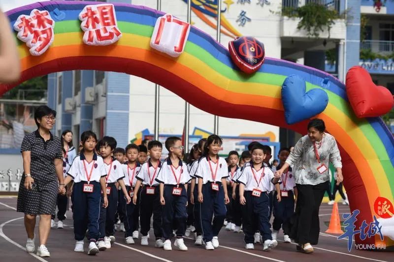 2021年9月1日开学第一天,广州市海珠区实验小学新生走过梦想门。羊城晚报全媒体记者 宋金峪 摄