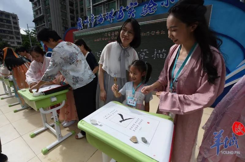2021年9月1日,广州市海珠区实验小学,入学开笔礼书写人字。羊城晚报全媒体记者 宋金峪 摄