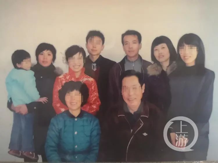 后排左二是妹妹田茹,后排右二、右三是田丰夫妻。