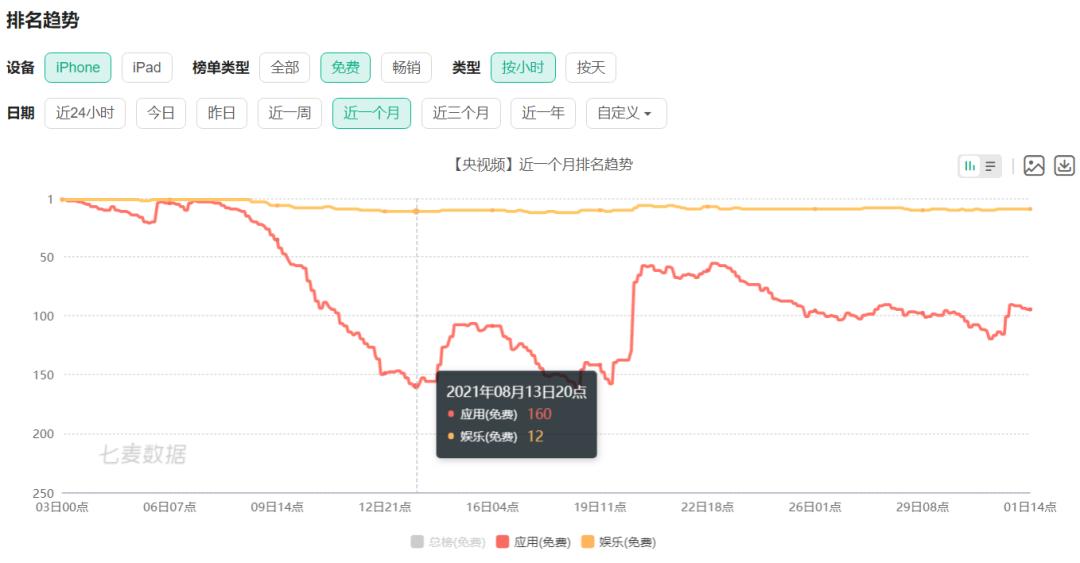 优质而符合网播平台特性的内容在一定程度上挽救了在奥运会结束后“遇冷”的央视频。从数据来看,8月8日东京奥运会闭幕之后,央视频的iOS应用市场排名便一路下降,直接由奥运期间的娱乐、应用双榜第一下滑至娱乐榜12、应用榜160。