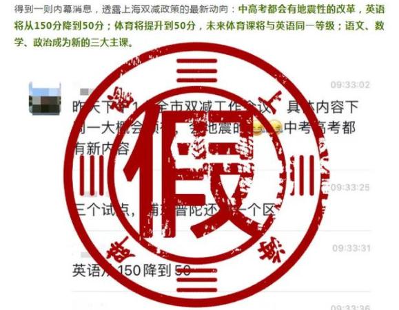 6)网传上海中高考英语将从150分降到50分,体育将提升到50分,上海市教委昨日回应:不实消息。