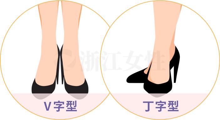 第一种,脚跟并拢,脚尖分开约45°,呈“V”字型;