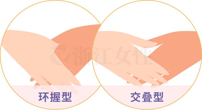 第一种,左手环状,握住右手拇指,右手其余四指并拢盖住左手手背;