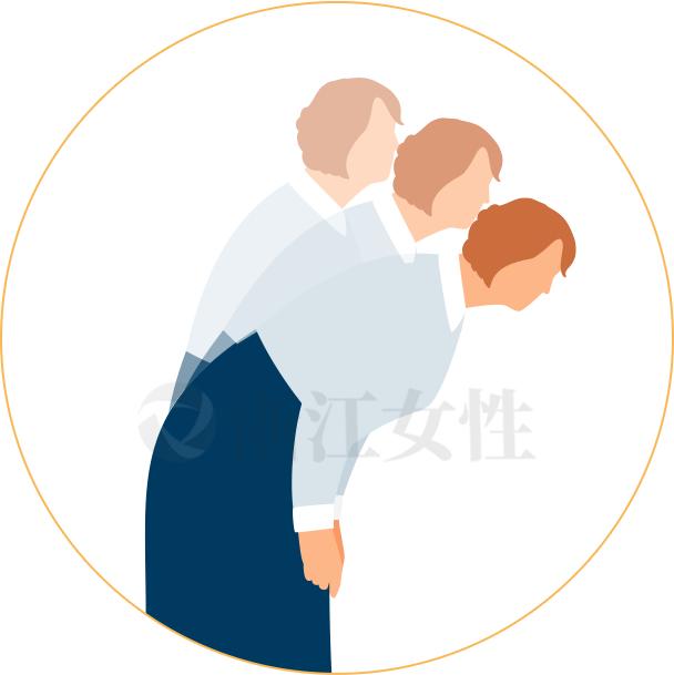 三度鞠躬为45°左右的鞠躬,多为在诚恳的道歉或深深的敬意时施行。