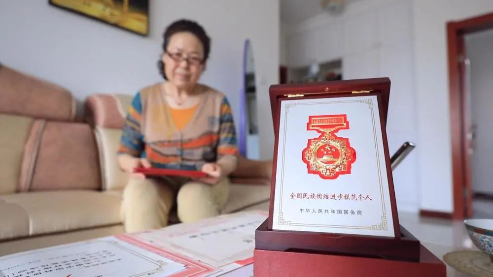 ↑全国民族团结进步模范个人王淑琴。赖志强摄
