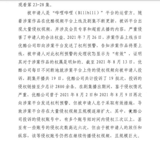 截至8月13日,优酷总共向B站投诉19批次,至少2800余条侵权链接。