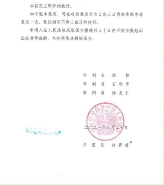 青岛中院表示,目前该案件还未立案审理,将在申请诉前保全后一个月内立案。