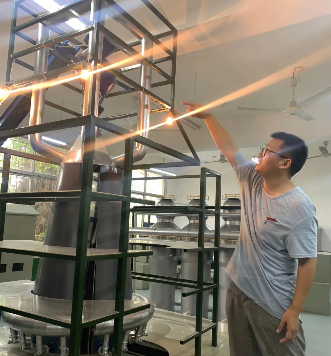 在江西冶金职业技术学院的钢铁生产智能模拟实验室,冶金工程系教授级高工卢新春向学生演示钢铁冶炼生产过程。
