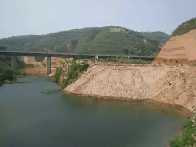 三门峡市湖滨区村民填土筑坝造成南交口大桥北侧(下游)堰塞湖浸泡高铁桥墩。