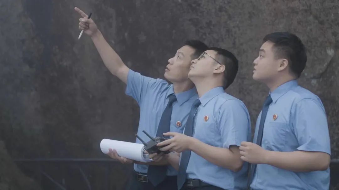 公益诉讼检察官在巨蟒峰现场调查取证。
