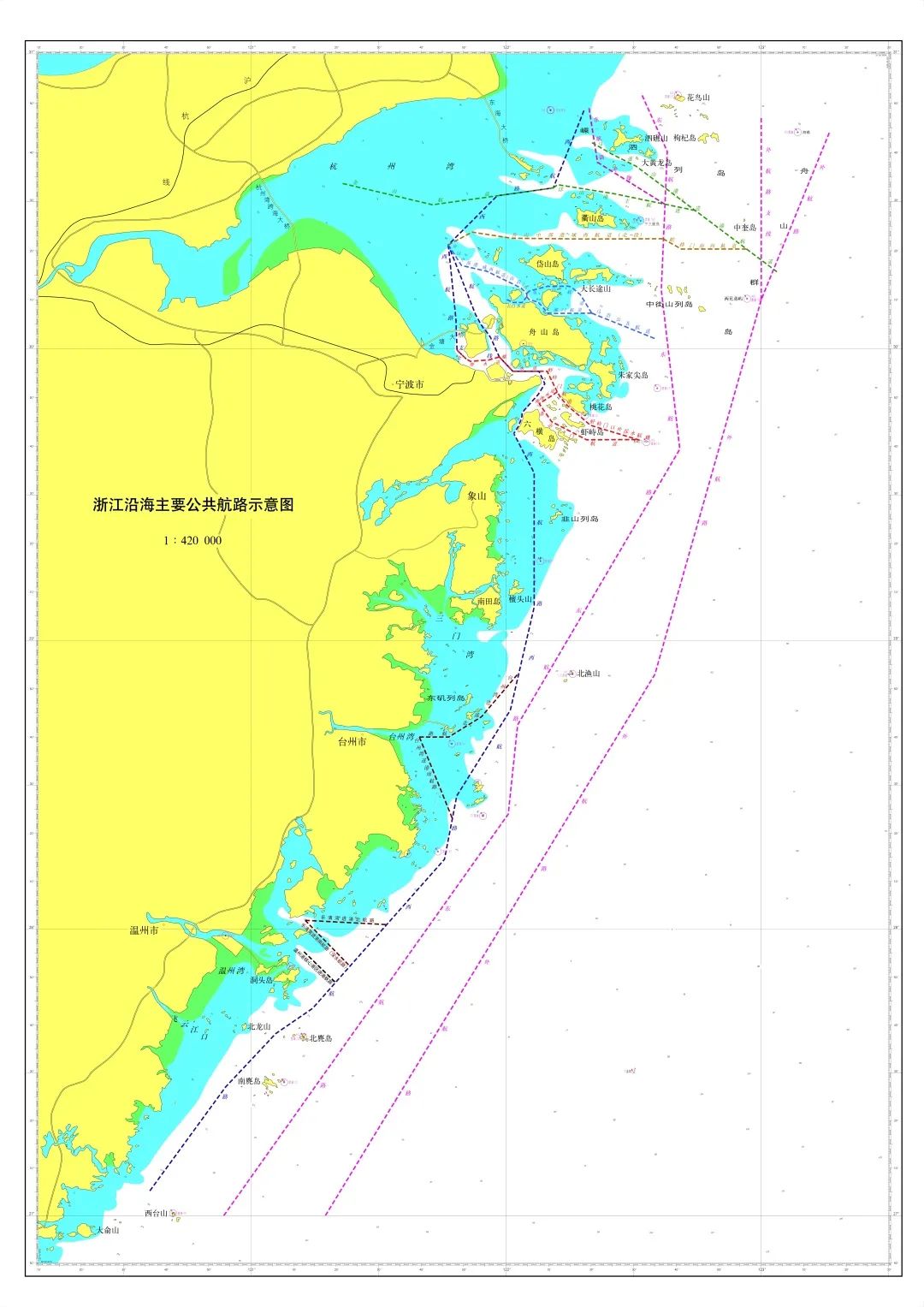 优化调整后,浙江沿海15条主要公共航路呈“三纵六横”格局。