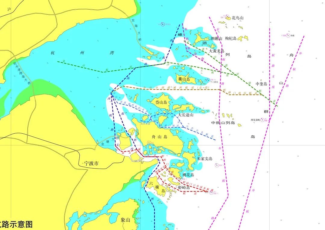 2.船舶应根据本船特点和目的港,参照最新航海图书资料,科学合理地选择航路,途经浙江沿海的大型船舶建议优先选择外航路,从海礁东侧通过。