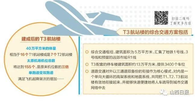 一组数字可以大体勾勒出未来T3航站楼的模样:外形似“山”,寓意向表里山河致敬;40万平方米的体量相当于16个T1航站楼或是7个T2航站楼;建成后,太原机场机位总数将达到155个,是原来机位数的三倍;单跑道变双跑道,满足飞机起降架次的增加……
