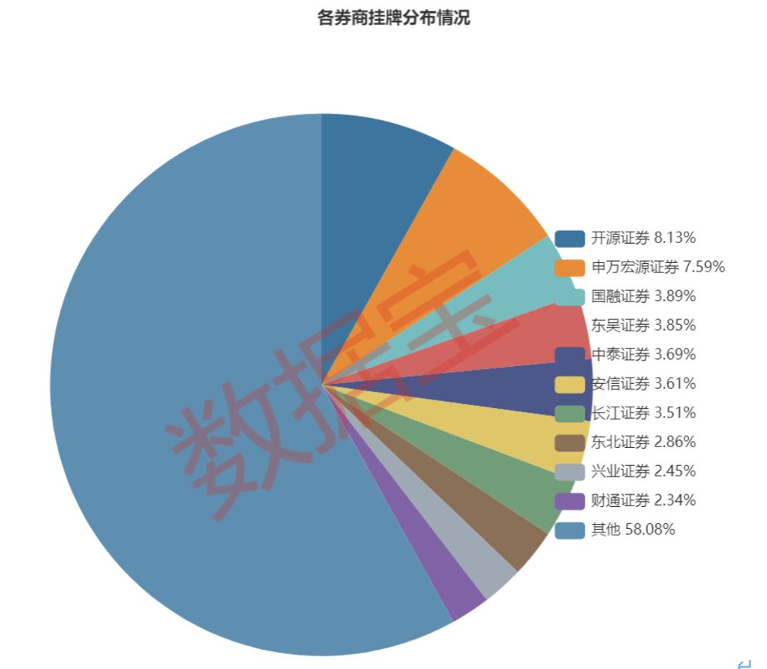 数据宝统计显示,7300余家挂牌企业中,有23家券商持续督导的挂牌新三板公司超过100家,其中开源证券达到600家,申万宏源证券达到560家,国融证券287家,东吴证券、中泰证券、安信证券等均超过250家。
