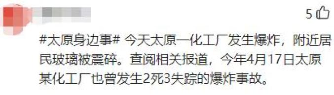 原标题:《突发!山西太原一化工厂发生爆炸,有员工和群众受伤,3公里外听到巨响》