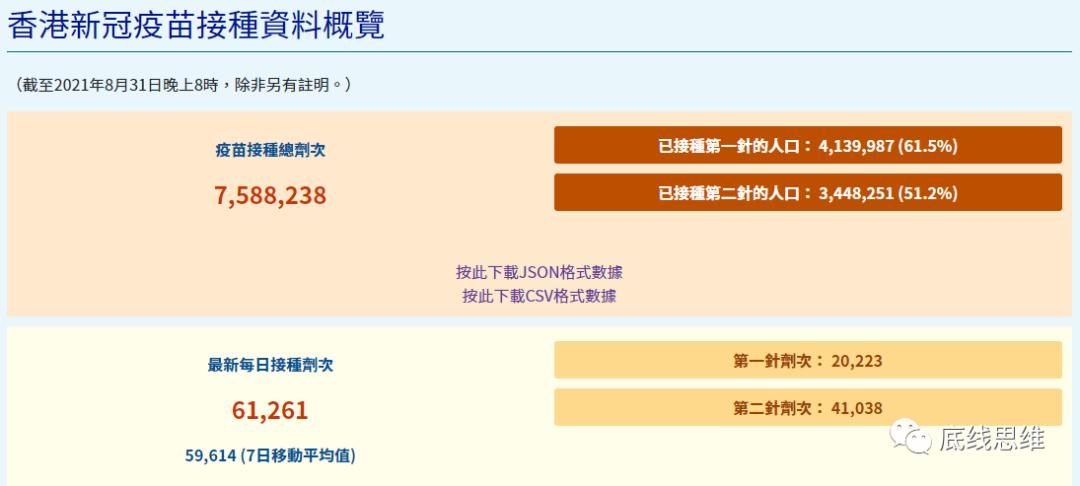 截至8月31日晚8时,香港新冠疫苗接种情况(图片来源:香港特别行政区政府官网)