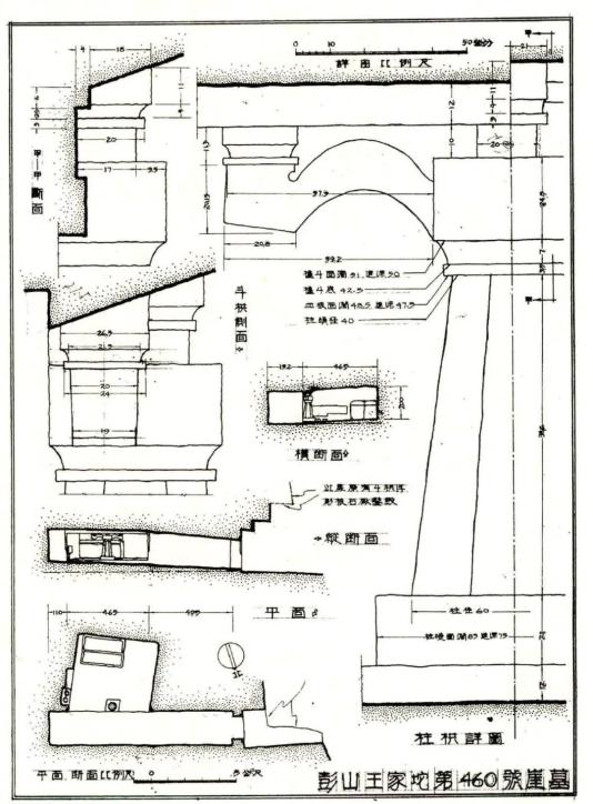 图1 彭山第460 号墓平、剖面图及柱栱详图