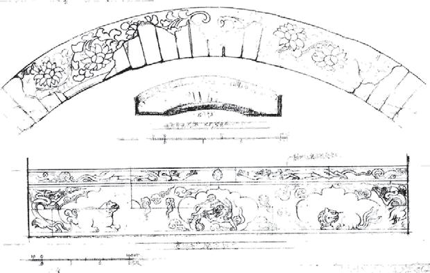 图6 前蜀永陵门券彩画与石座雕刻详图