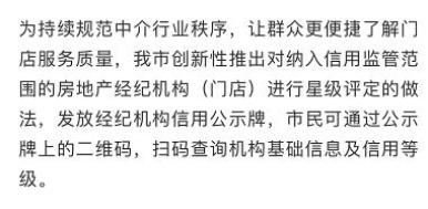 “今后一定加大对门店经纪人员的诚信教育力度,加强公司诚信文化建设,守法经营。”近日,我市某中介公司负责人在被市住房局约谈时反思到。因下属门店在经营时,存在引导签订损害买卖双方权益条款的违法违规行为,该公司除了被罚款,还被暂停网签三个月,在经营上付出了代价,失信行为还被依法记入信用档案。