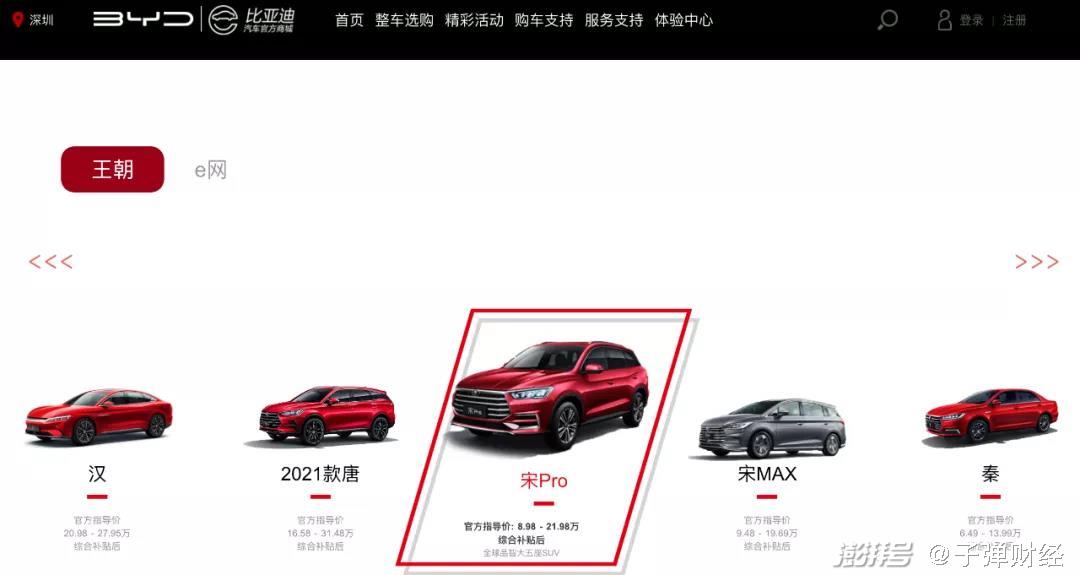 从比亚迪官网来看,目前,比亚迪元、E、宋部分产品处于10万元及以下价格带,秦、宋部分产品主攻10万元-20万元价格带,唐、汉处于20万元-30万元价格带。